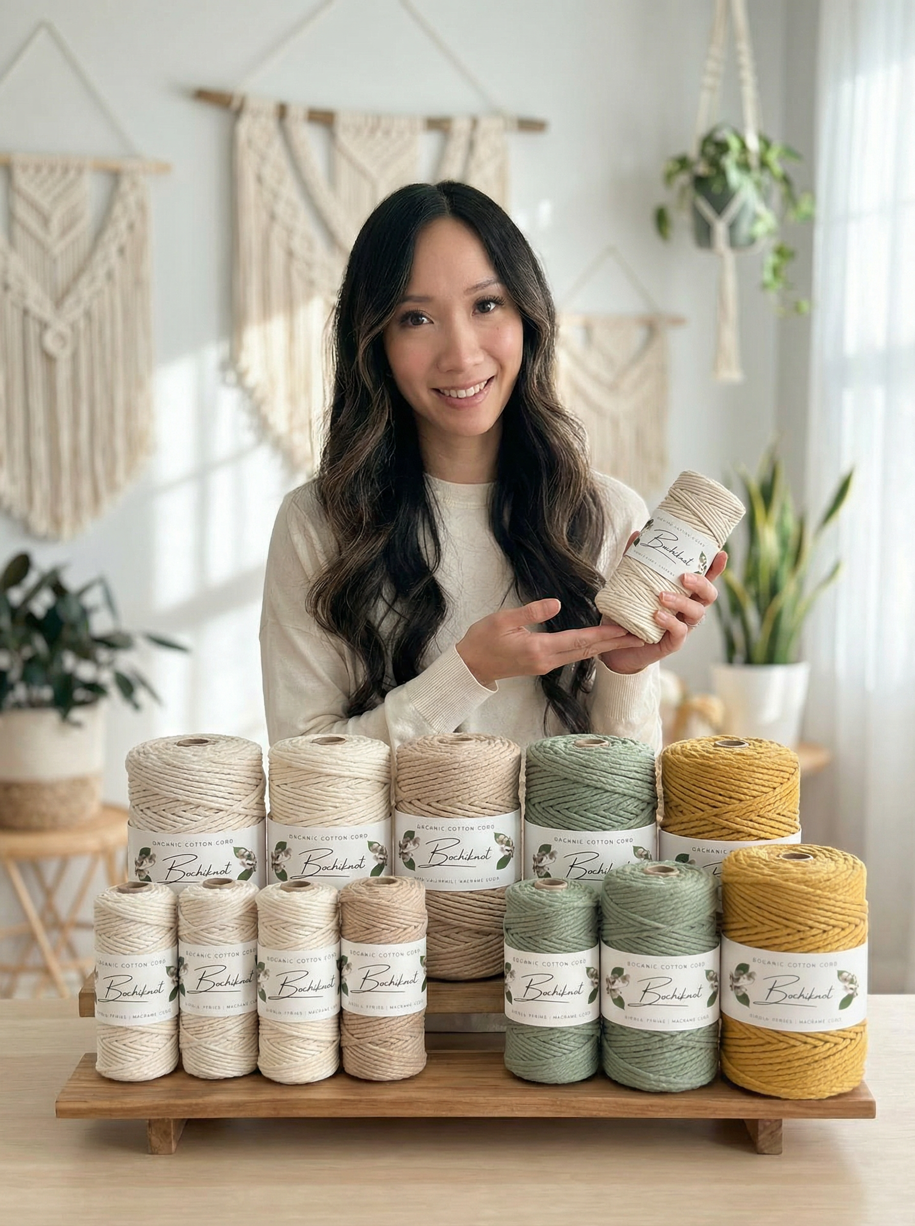 - Cords: The primary material in macrame is cords made from cotton, jute, nylon, or synthetic fibers. They come in different thicknesses and colors. You can learn more about macrame cord with our "Macrame ESSENTIALS: Everything You Need—Cord, Tools, & Materials" post.