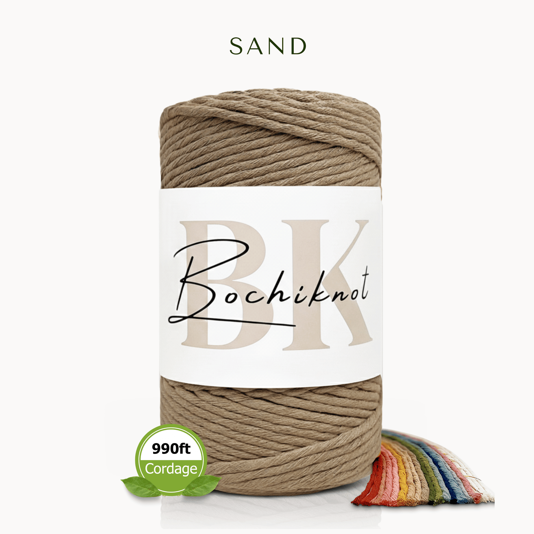 This sand-colored single-strand macramé cord is made from recycled cotton for a soft, natural feel and reliable strength. Its neutral tone pairs beautifully with any space, making it ideal for calm, thoughtful macramé projects.